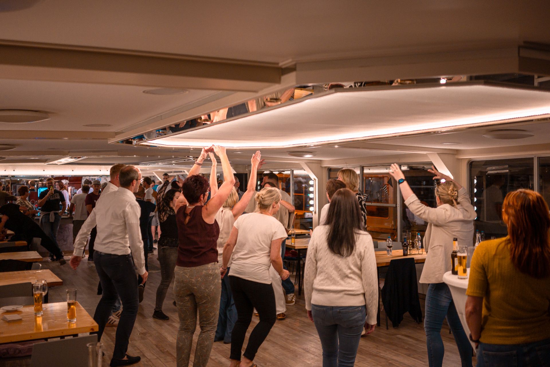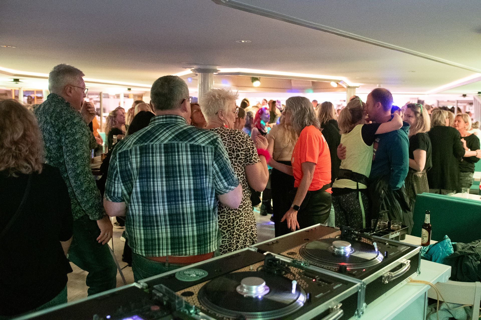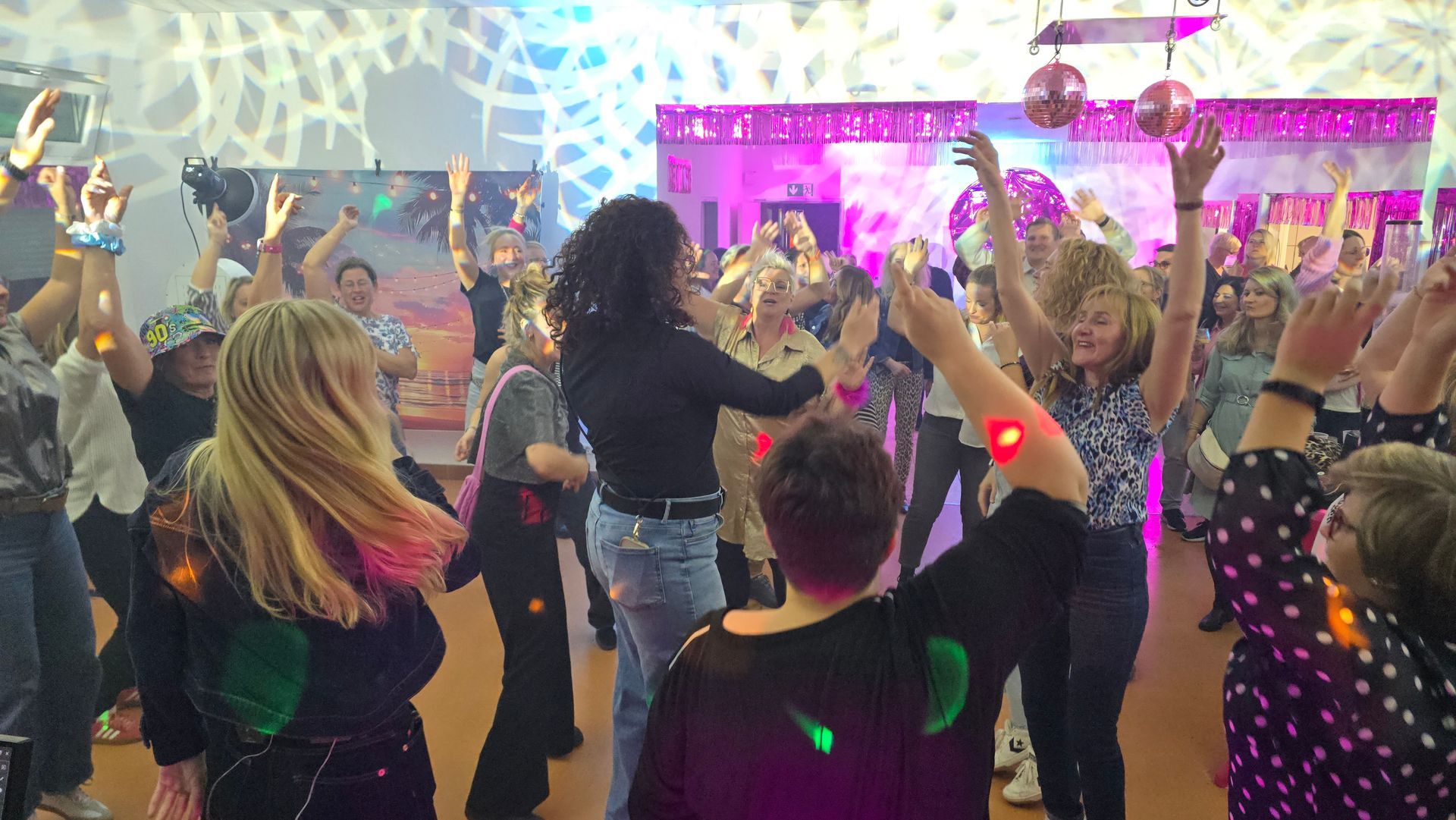 eine volle Tanzfläche, auf der Jung und Alt gemeinsam feiern mit strahlenden Gesichtern, wenn der perfekte Song im richtigen Moment erklingt.