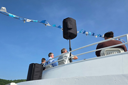 Für eine Outdoor-Trauung, für die Beschallung auf der Terrasse oder dem Sonnendeck auf dem Schiff bieten wir professionelle Akkulautsprecher an. Auf Wunsch auch mit batteriebetriebenem Sennheiser Funkmikrofon.