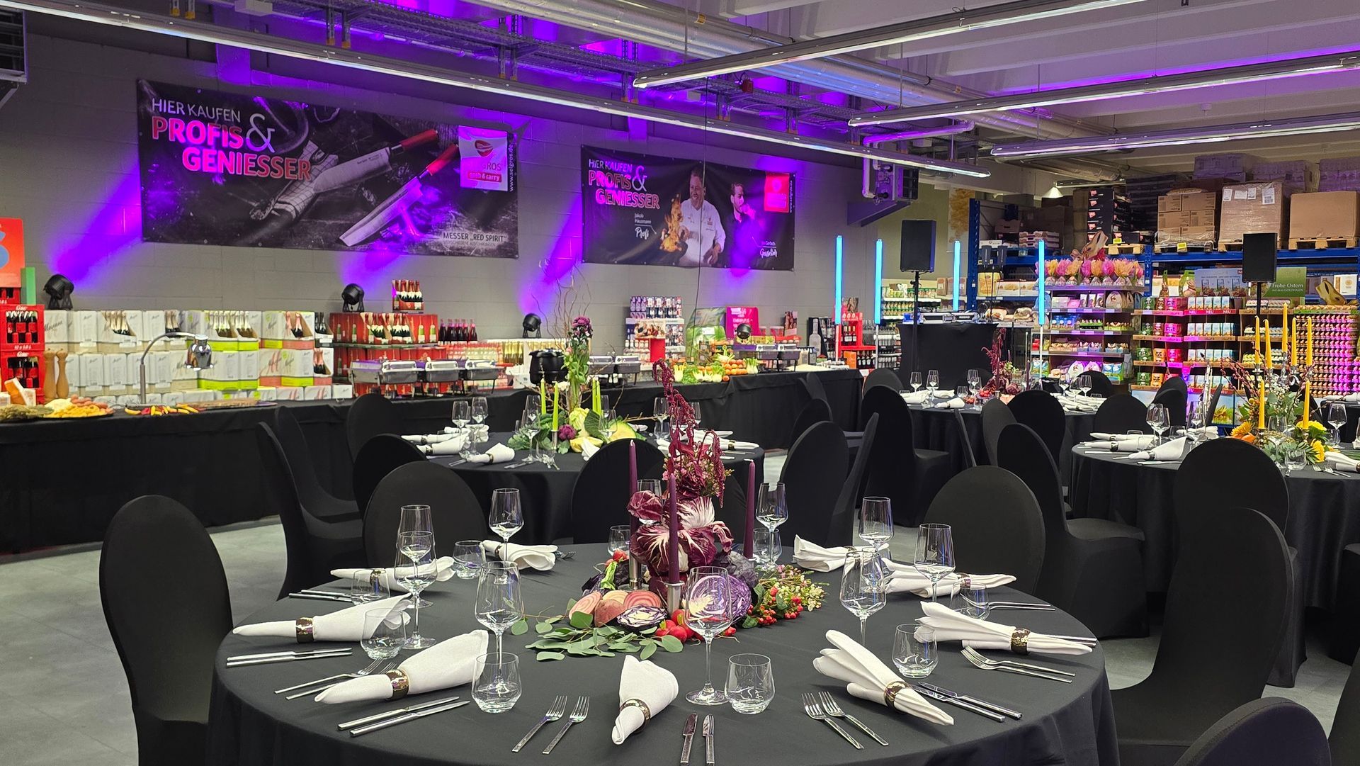 Für die private Party habe ich eine kleine Menge an 80er Stehtischen, wahlweise inklusive Husse in Schwarz oder Weiß.