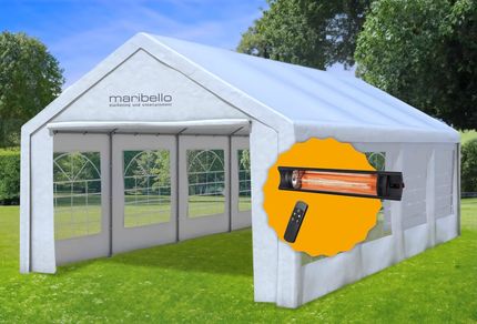 Partyzelte aus qualitativem und wasserfestem PVC in der Größe 8x4 Meter. Klickgestänge! Keine Verschraubung notwendig.