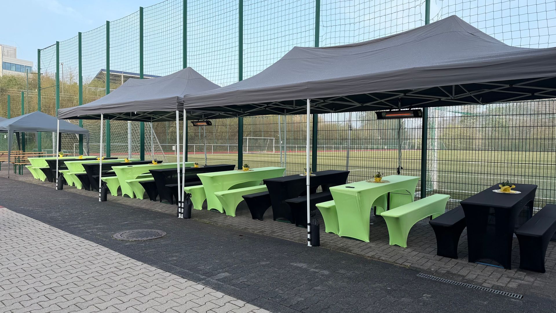 Für die Standard Bierzeltgarnituren (Tisch 220 x 50 cm, Bank 220 x 25 cm) gibt es bei mir Hussen in Apfelgrün und Schwarz verfügbar.